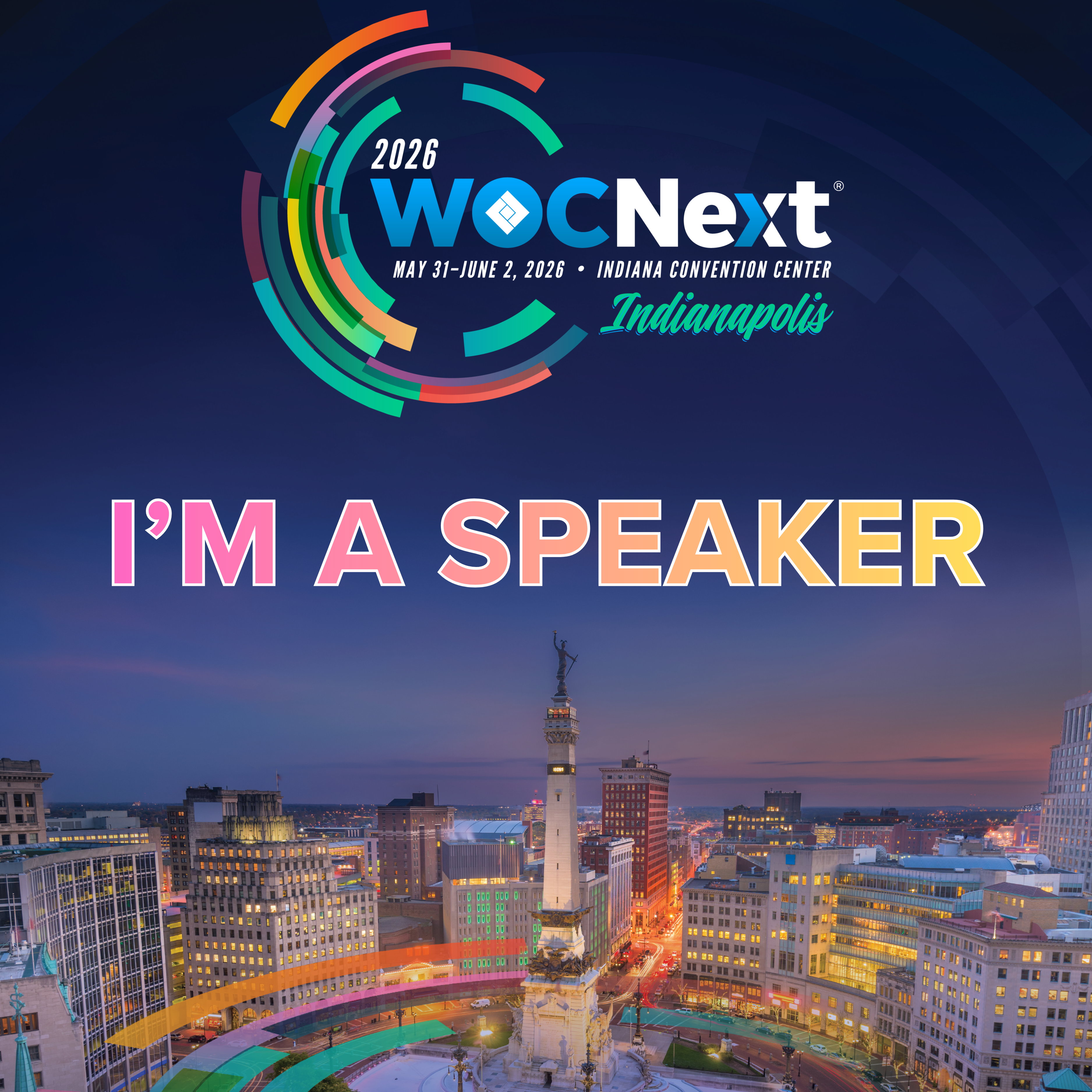 WOCNext is headed to Indy! Share your excitement online with these ready-to-post images and sample captions.